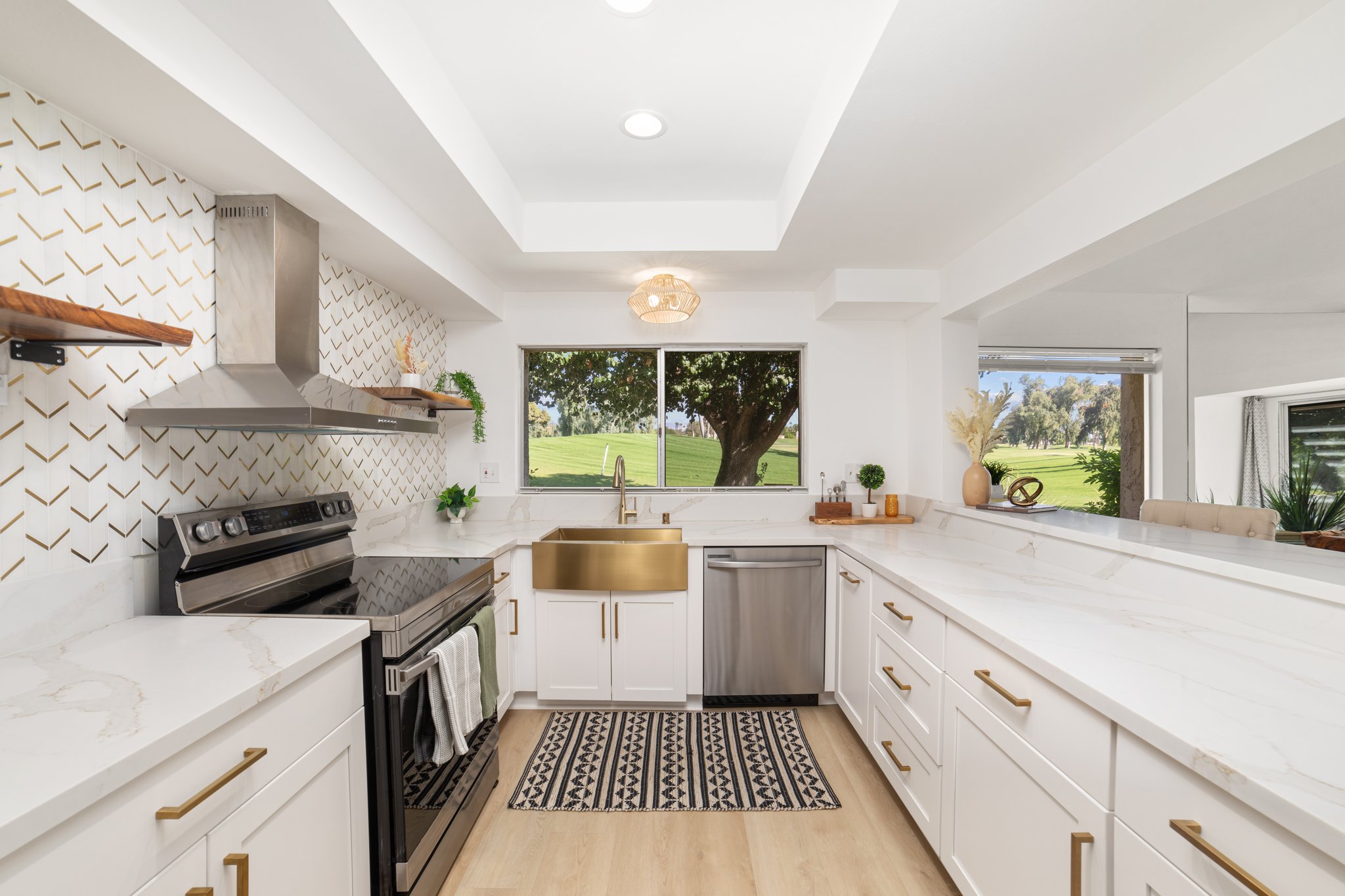 Rehab: 2 Bed, 2 Bath Townhome in Palm Desert with 1,565 sq ft, 2 carport spaces, HOA, country club, golf. Remodel: Kitchen, Living room, Bedrooms, Bathrooms, Flooring, Paint.
